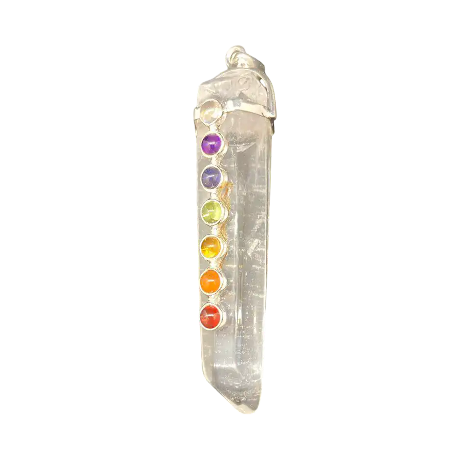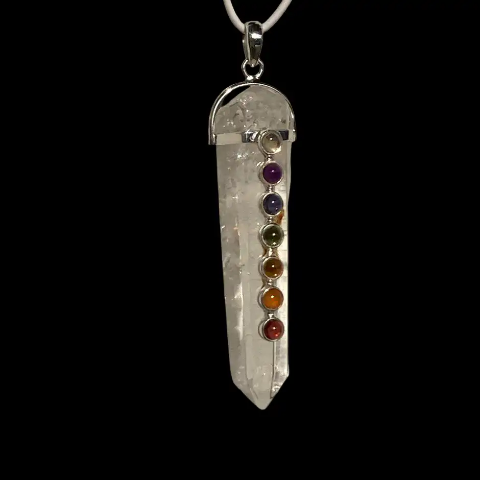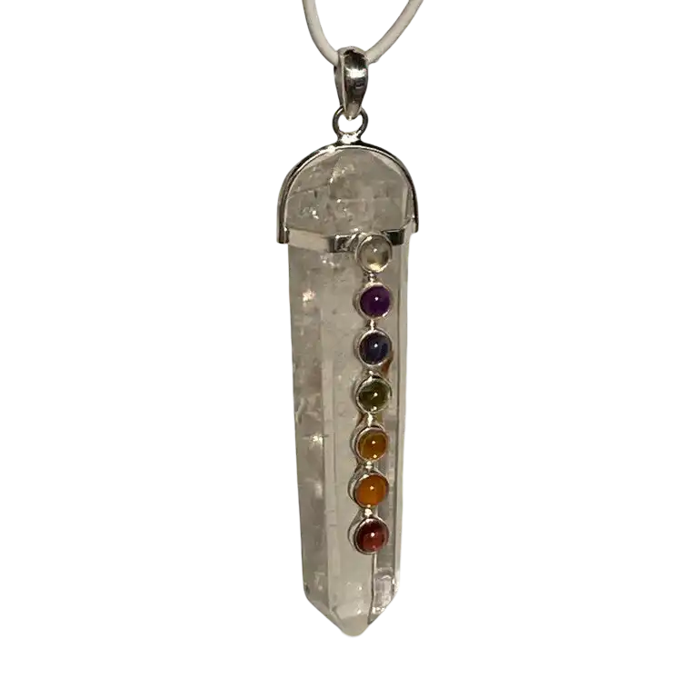 Silber 925 Chakra Anhänger aus Bergkristall mit 7 farbigen Edelsteinen: Energetische Rückverbindung für harmonisches Wohlbefinden