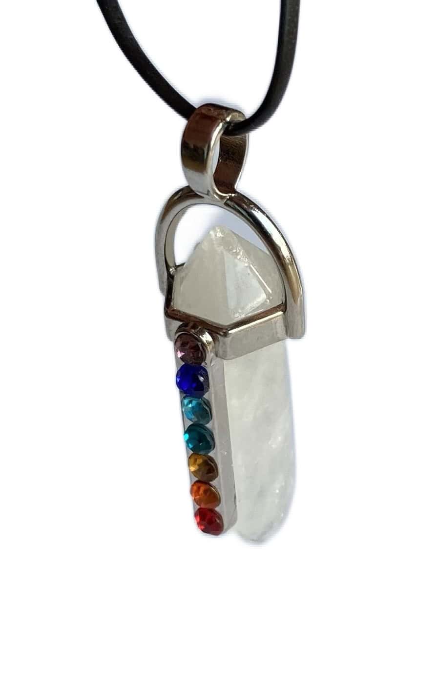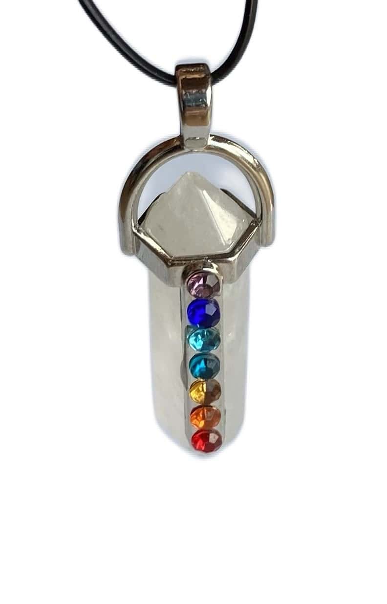 Silber Chakra Anhänger aus Bergkristall mit 7 farbigen Steinen: Energetische Rückverbindung für harmonisches Wohlbefinden