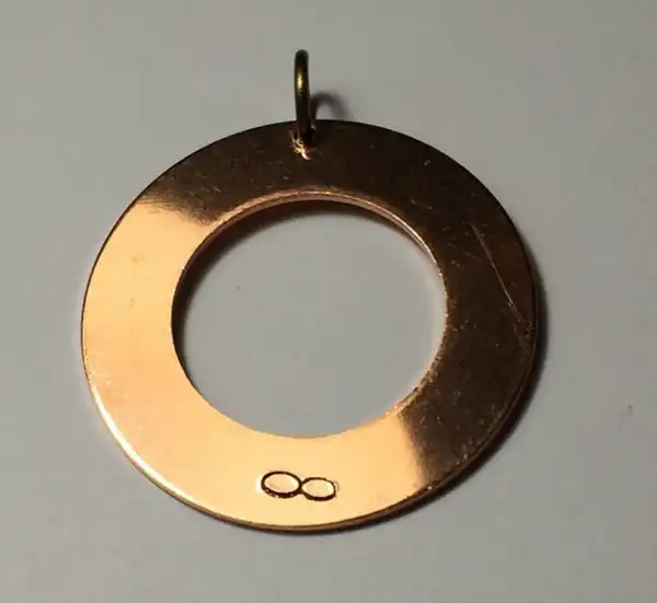 Das Material Kupfer ist empfindlich. Die Oberfläche verfärbt sich natürlich und bildet somit einen Korrosionsschutz. Durch dieses „Anlaufen“ erhält der Anhänger eine antike Optik. Durch geeignete Pflegemittel kann der Anhänger jedoch nach Belieben wieder zum Glänzen gebracht werden.